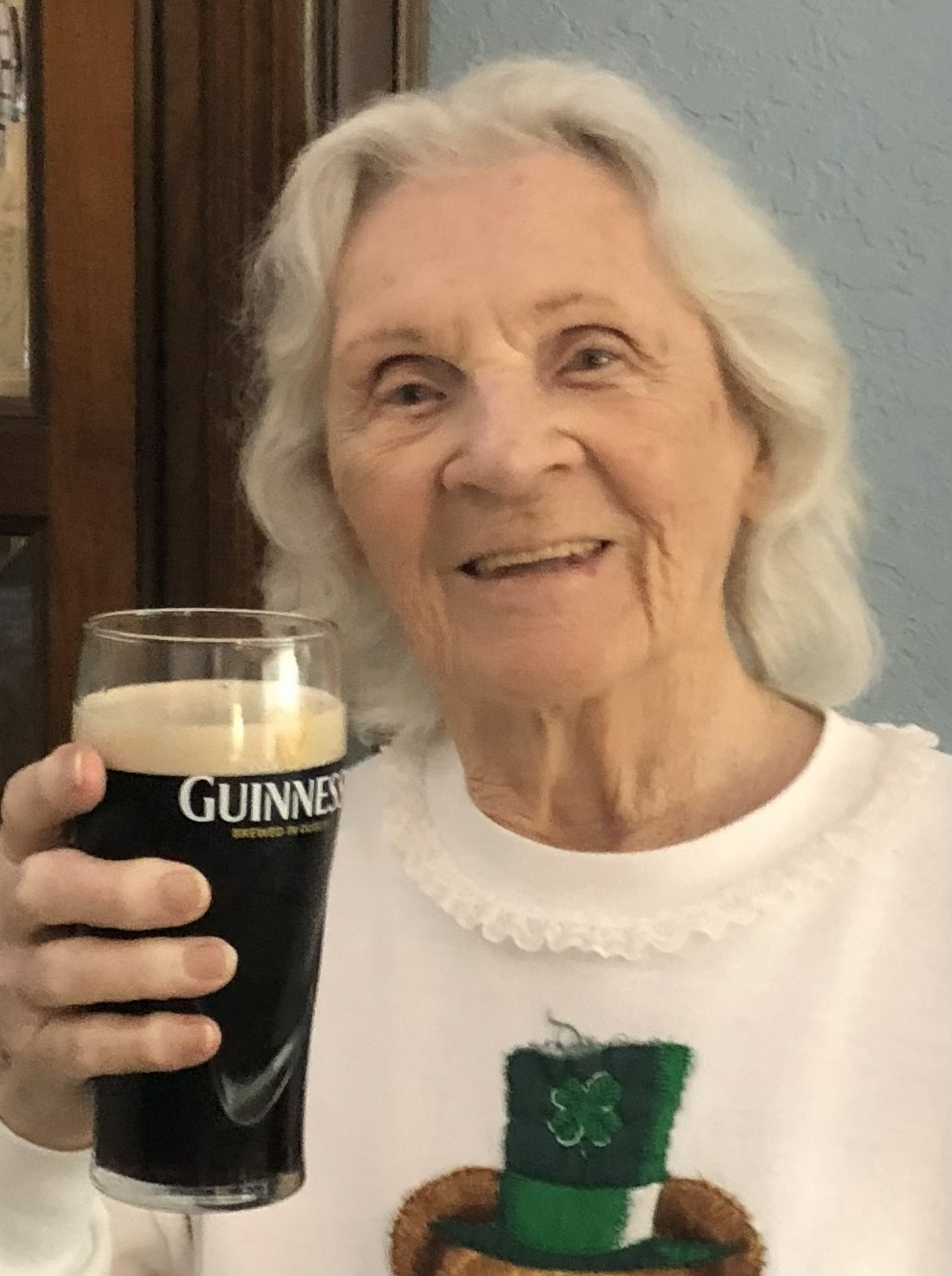 Wanda and I lived across the street from Mary. She was a beautiful person who loved her family and cherished their time together, especially her son Bob ( Bobbie), who lived next door. Bob was devoted to his Mom, visiting her every single day and fixing a multitude of “honey dos,” with never a complaint. My favorite memory of Mary will be the photo that accompanies this notice – Mary holding a Guinness (what else !) with a big smile on her face! RIP Mary, we miss you!